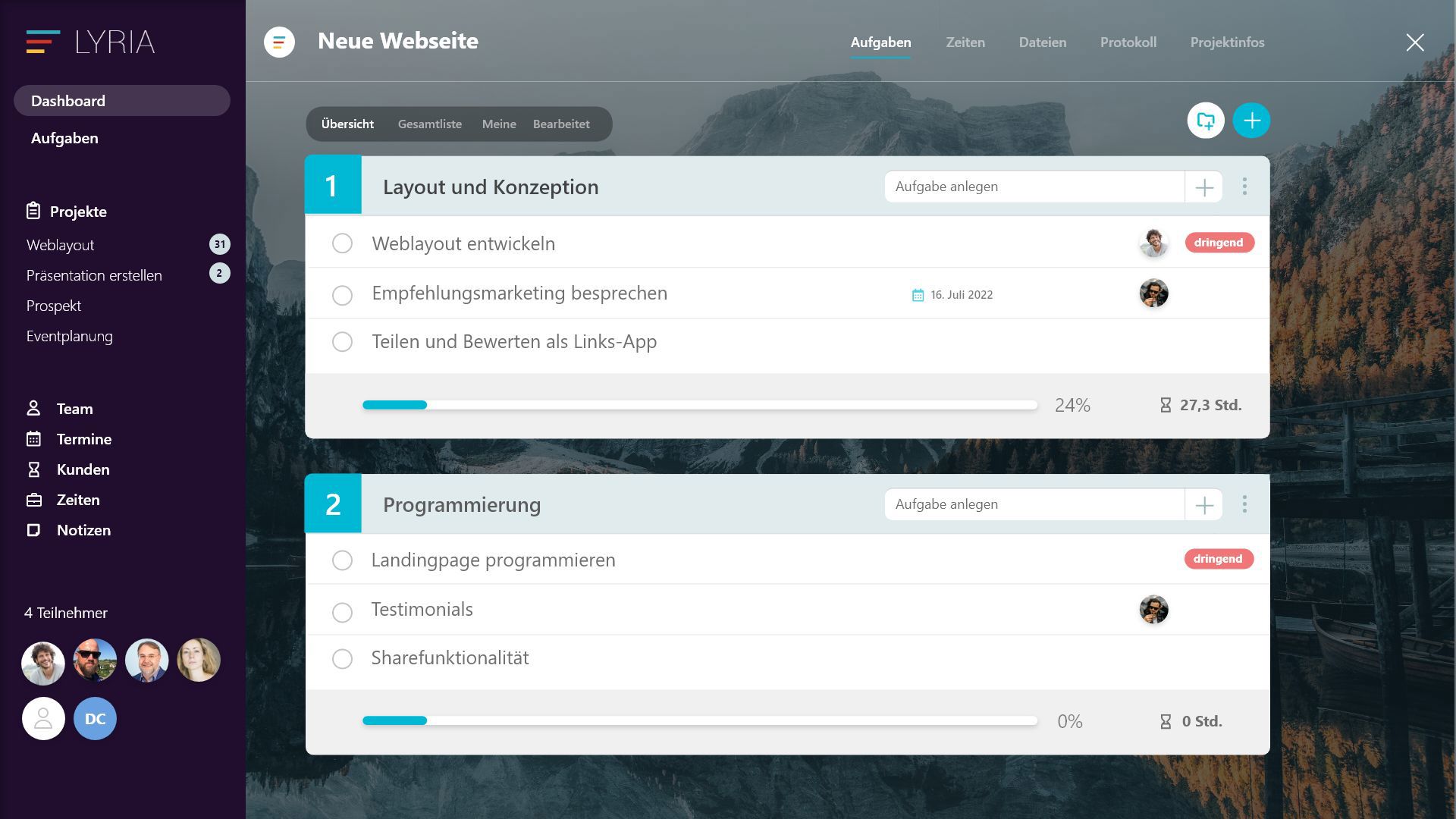 Lyria hat mir geholfen, meine Projekte besser zu organisieren und die Kommunikation mit meinem Team zu verbessern. Wir können dezentral Aufgaben und Projekte bearbeiten, Aufgaben diskutieren und alle offenen Fragen lösen, ohne dass wir uns treffen müssen. Das spart uns viel Zeit und ermöglicht uns, uns auf das Wesentliche zu konzentrieren.