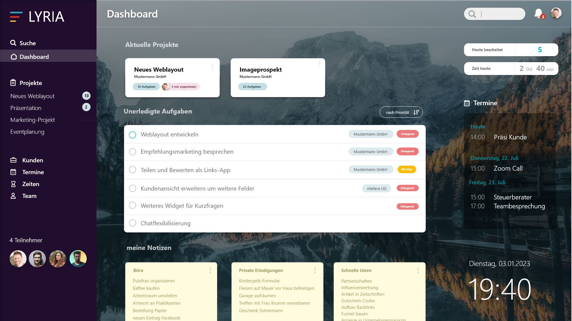 Ich nutze Lyria, um die Projektarbeit im Team zu vereinfachen und ich bin begeistert! Ich kann Aufgaben an Teammitglieder delegieren und den Fortschritt verfolgen. Insbesondere die Übersichtlichkeit und Einfachheit der Software hat mich überzeugt!